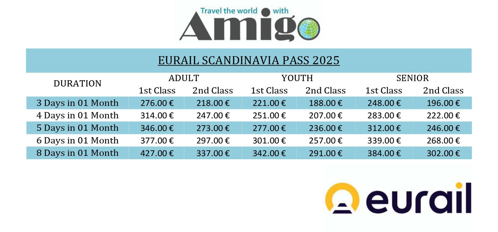 The Eurail Scandinavia Pass offers unlimited train travel across Denmark, Norway, and Sweden. It’s a flexible and convenient way to explore major cities, fjords, and scenic landscapes across the region by rail.