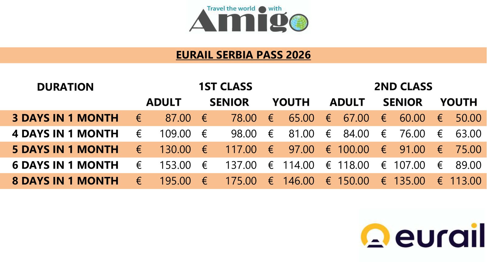 The Eurail Serbia Pass offers unlimited train travel across the national rail network. It’s a flexible and affordable way to explore Belgrade, Novi Sad, and Serbia’s historic towns and scenic countryside by train.